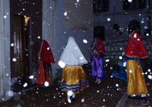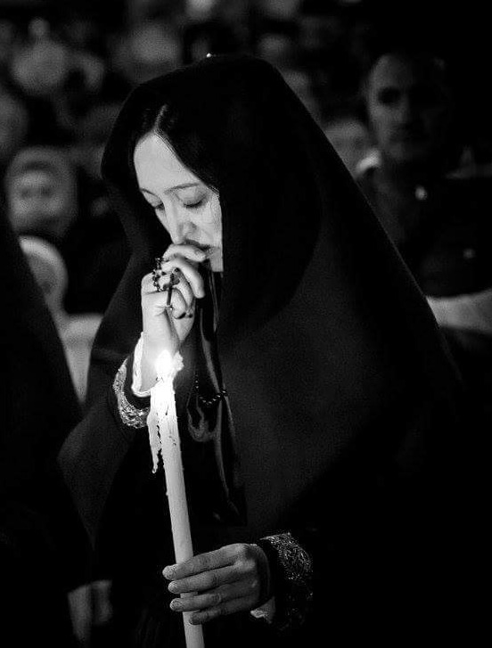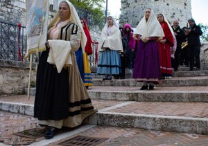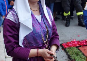La mantigliana nera, indossata dalle donne campobassane in lutto, ricorda moltissimo per forma e colore, il manto dell’ Addolorata.