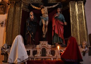 Madri e spose videro nel Cristo Morto i propri figli e mariti morti per la patria e li poterono piangere sul sepolcro, ai piedi della Vergine Addolorata.