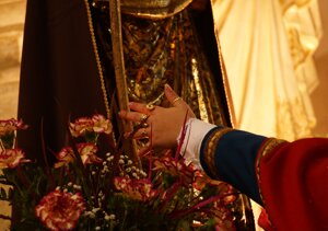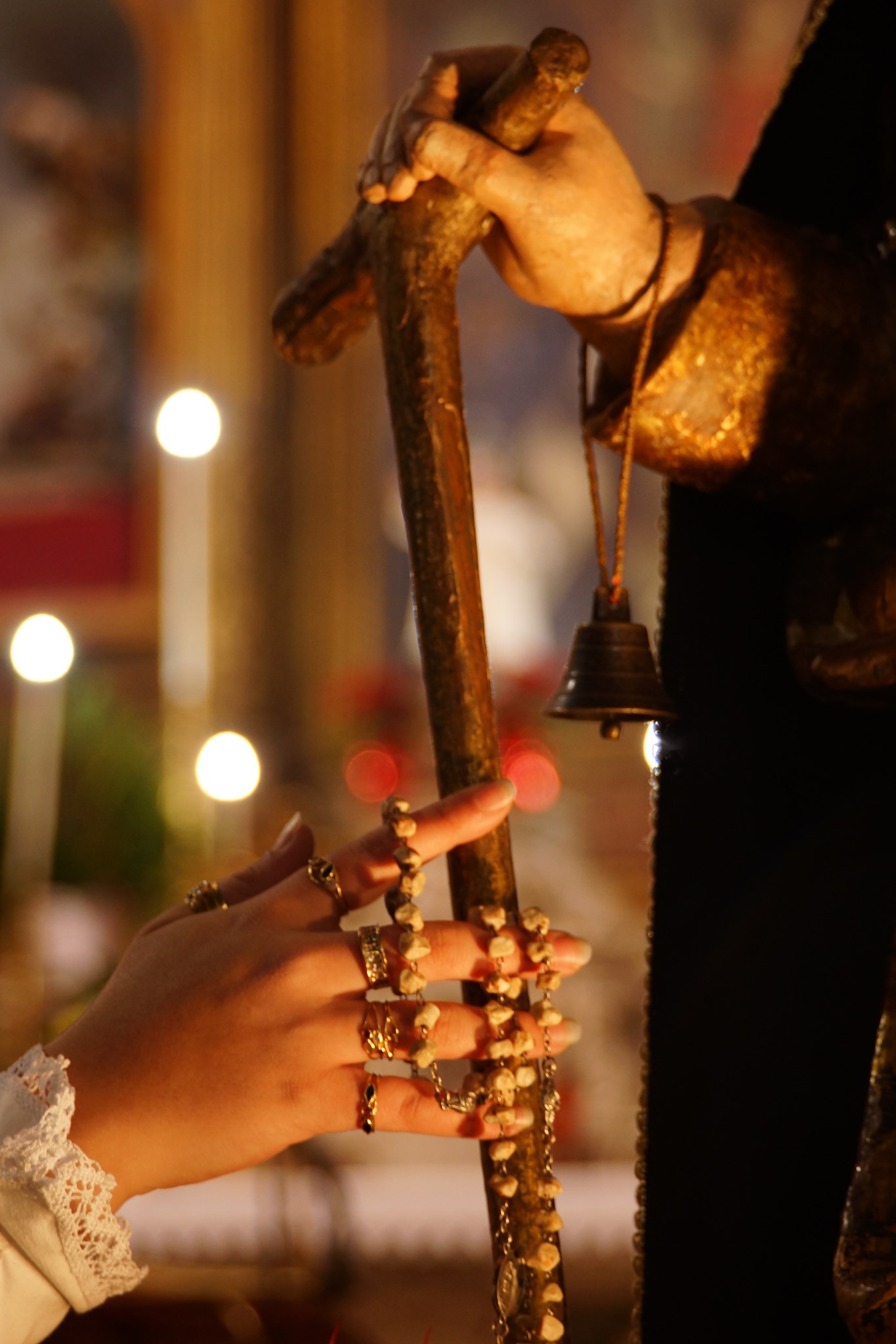 Abbiamo pregato davanti agli straordinari altari laterali intagliati in legno e rivestiti in oro e alle due statue raffiguranti il Santo eremita: quella in pietra, risalente al XIII secolo e quella in legno rivestito con lamine d' oro, risalente al XVI secolo.