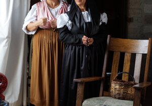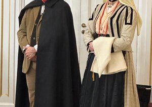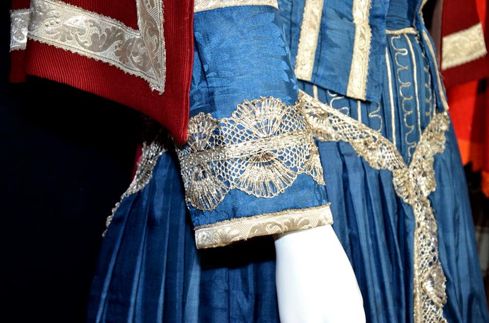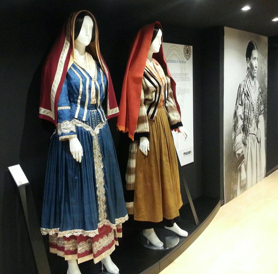A destra costume nuziale in seta, con galloni in oro. A sinistra costume "degli otto giorni" in seta, con galloni in argento.