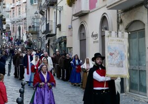 Lei è Cuncetta, la nostra mascotte, nata da un'iniziativa di beneficenza a favore dell'Unicef e ispirata alla protagonista della mascherata tradizionale campobassana di Cuncetta de Mascione.