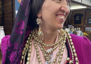 Costume originale di Campobasso di fine '800 e, tra i gioielli, orecchini tipici campobassani, noti come "palluccelle" (collezione privata).